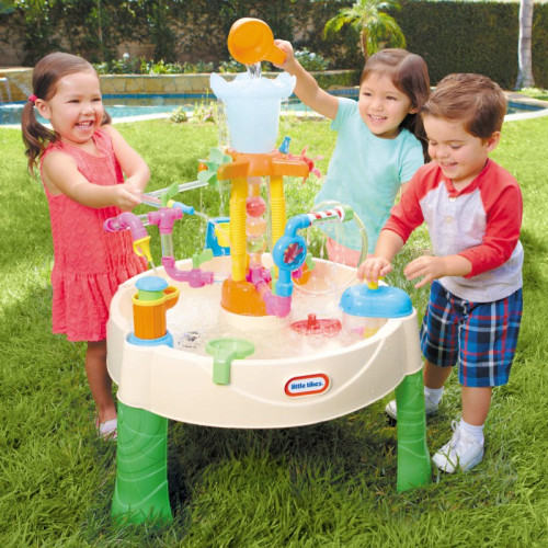 Детский интерактивный столик Little Tikes водяной столик Fontanna Centrum – это прекрасное развлечение с водой! Чтобы вода двигалась, можно воспользоваться встроенным насосом. В распоряжении детей также много фигурок, трубочек, кранов, мясорубок и гибких шлангов. Используя их, вы можете изменять направление потока воды, что сделает ваше развлечение еще более увлекательным! Когда вы закончите играть, вы можете слить воду, прочистив пробку внизу стола.Этот набор – идеальная игрушка для вашего сада.