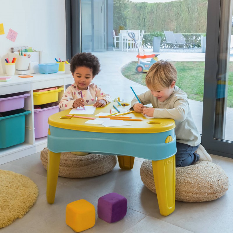 Детский стол песочница-бассейн 4в1 Feber FEU14000 - неотъемлемый элемент любой игровой площадки, как дома, так и в общественных местах. Стол имеет две камеры, в которые можно насыпать песок или воду. Кроме того, в центральной части стола дети найдут мясорубку, что сделает забаву еще более привлекательной. Все было разработано с учетом самых маленьких детей, благодаря чему стол имеет закругленные края.После крепления крышки ¦набор можно использовать как столик для рисования, ¦в нем есть выемки, например для цветных карандашей. Песочницы Feber изготовлены из высококачественных материалов с вниманием к мельчайшим деталям. Пластик покрыт УФ-покрытием, надолго сохранившим качество цвета. Песочницы можно комбинировать с другими игровыми площадками или садовыми домиками, создавая уникальное место для детей.