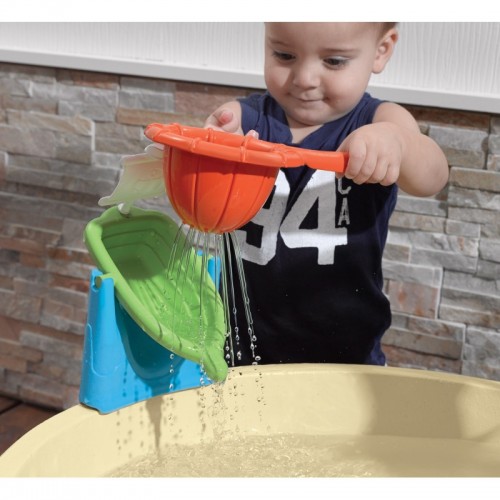- столик предназначен не только для игры с водой, внутрь также можно насыпать песок, шарики или лапшу, чтобы развивать сенсорные и мануальные навыки ребенка через игру.