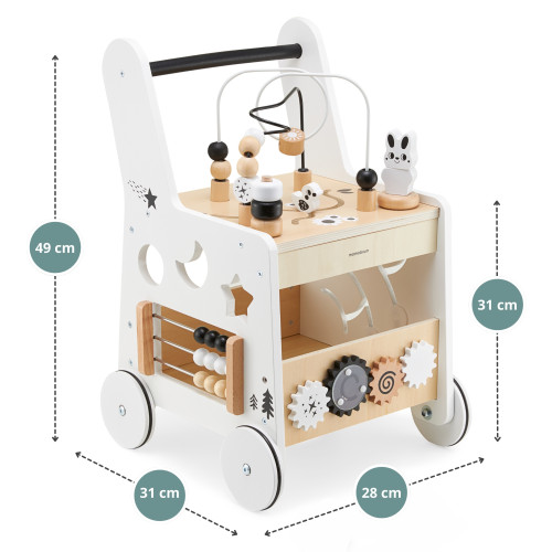 Многофункциональные ходунки Mamabrum 6в1 – обеспечьте ребенку развивающие развлечения. Деревянный толкатель станет для него надежной опорой в процессе обучения самостоятельной ходьбе, а развивающий столик гарантирует множество интересных занятий для совершенствования ручной ловкости и познавательной компетенции! Благодаря деревянной и стойкой коляске малыш будет чувствовать себя увереннее, делая свои первые шаги. А когда придет время отдохнуть, он сможет провести время за учебным столом. Здесь его ждет много сенсорной стимуляции. Фантастическая тренировка для маленьких пальчиков!