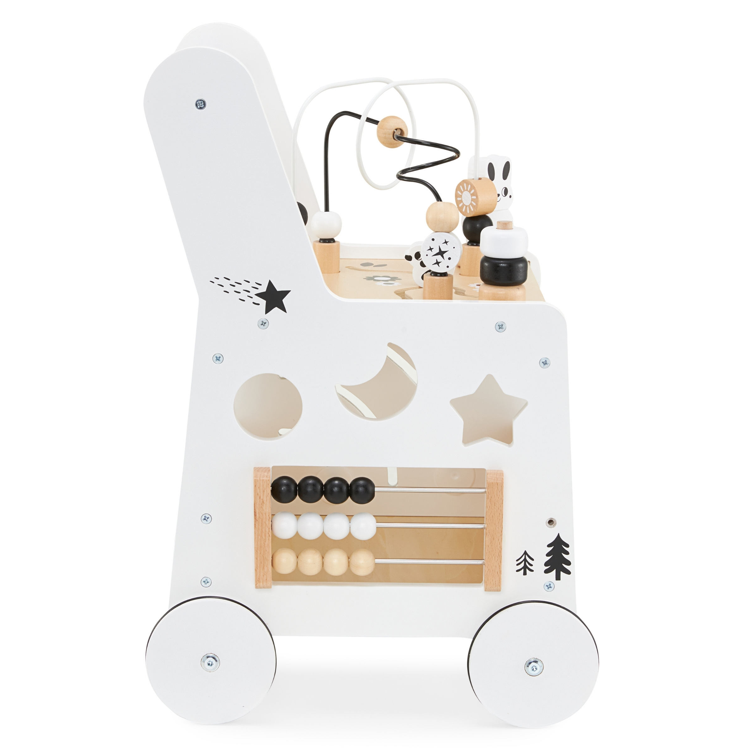- Деревянный толкатель с учебным столиком стимулирует развитие как проворных, так и когнитивных навыков. Это фантастический подарок для любознательного малыша.